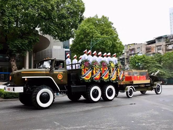 Khoảng 7 giờ 40, đoàn linh xa bắt đầu di chuyển từ Hội trường Nhà tang lễ Quốc gia ra cổng. Lãnh đạo Đảng, Nhà nước, gia đình nguyên Chủ tịch nước Trần Đức Lương cùng bạn bè quốc tế đi sát đoàn xe, bày tỏ sự tiếc thương trong giờ phút tiễn biệt ông.