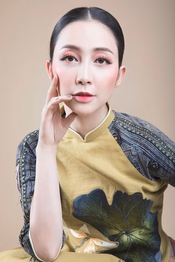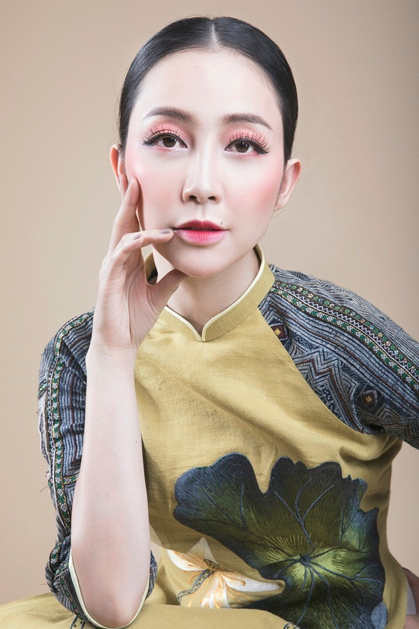 Bên cạnh những mẫu áo dài truyền thống, nhà thiết kế còn cách tân với áo không cổ, trong khi phần tà vẫn giữ độ dài theo kiểu cũ.