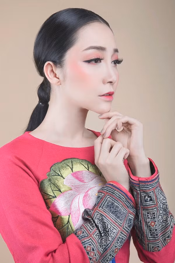 Sắc hồng đỏ được nhấn nhá, tạo nét tươi trẻ cho người mặc.