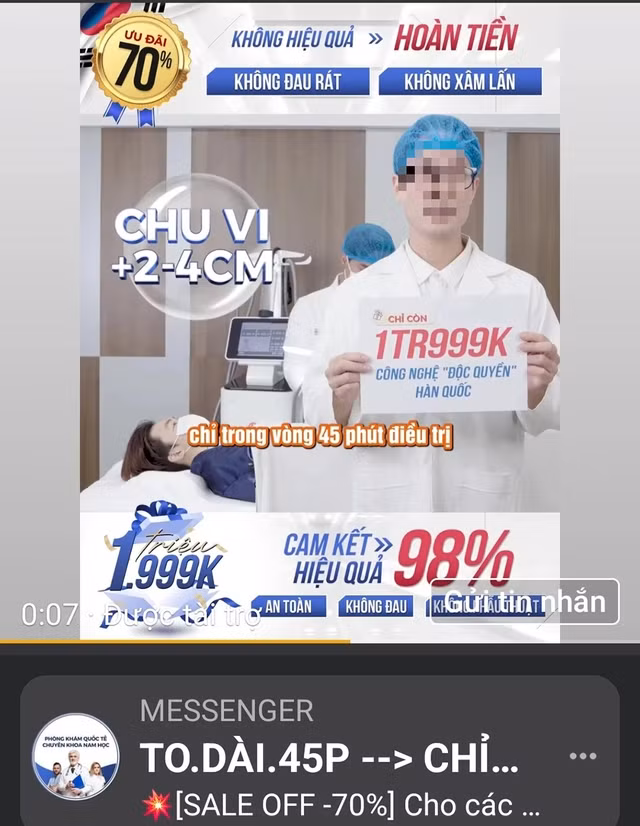 Hiện nay trên mạng xã hội nở rộ quảng cáo về các phòng khám (PK) chuyên khoa với những thông tin như ứng dụng kỹ thuật hiện đại và cam kết giá điều trị "bình dân" chỉ vài trăm nghìn đồng là khỏi bệnh yếu sinh lý, tăng kích thước dương vật, cắt bao quy đầu…
