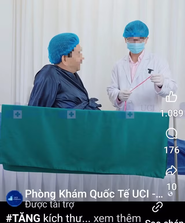 Trong vai người có nhu cầu cần nâng cấp "cậu nhỏ", PV Thanh Niên vào một trang quảng cáo có tên PK quốc tế UCI International (địa chỉ số 3.x Nguyễn Văn Cừ, P.Cầu Kho, Q.1, TP.HCM), với 10.000 lượt thích và 11.000 người theo dõi. Trang có gắn nhiều clip quảng cáo, thu hút hàng nghìn lượt like, theo dõi và bình luận. Chúng tôi gọi vào số điện thoại 0797956.xxx ghi trên trang quảng cáo thì một giọng nữ nghe máy, tự xưng là lễ tân PK và nói chúng tôi cúp máy, sẽ có "trợ lý của bác sĩ (BS)" gọi lại ngay để tư vấn kỹ hơn. Ít phút sau, một giọng nữ khác gọi lại cho chúng tôi. Người này xưng tên My, trợ lý của BS PK quốc tế UCI International.