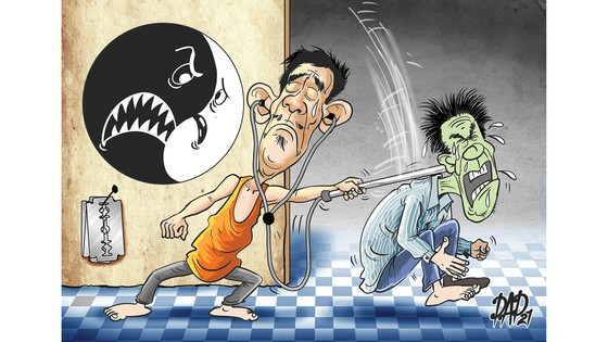 | Dùng dao lam chữa bệnh tại chùa Ưu Đàm, TP Thủ Đức (ảnh trái) và “hậu quả” sau khi bị đệ tử thầy Tư nện để chữa bệnh |