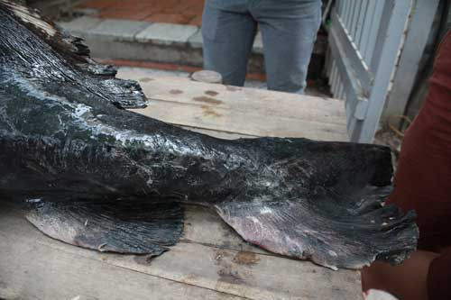 Cần đến 5 người để bê đỡ con cá khổng lồ.