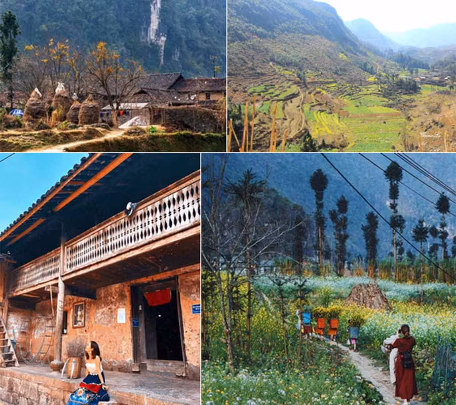 Phố Cáo cuốn hút bởi những nếp nhà xưa cũ, hoa tam giác mạch hoa đào, hoa mơ, hoa mận… đua nở bên bờ rào đá mắt cáo đặc sắc của người dân vùng cao. Bạn có thể tham quan và chụp ảnh tại thung lũng Sủng Là (hay thung lũng hoa hồng), phim trường của bộ phim Chuyện Của Pao nổi tiếng. Dinh thự họ Vương (dinh thự vua Mèo) hấp dẫn du khách bởi công trình kiến trúc đẹp hiếm có của vùng cao nguyên núi đá. Ảnh: Immin.2207, Ngocquyenbee.