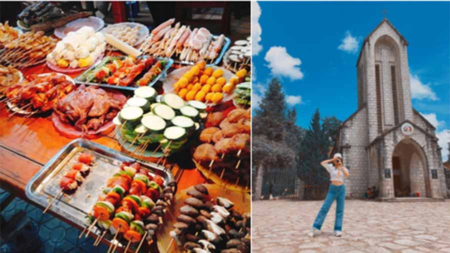 Dù các quán cà phê sống ảo nổi tiếng ở Ô Quy Hồ đã bị dỡ bỏ, bạn cũng không nên bỏ lỡ cơ hội chiêm ngưỡng toàn cảnh bức tranh thiên nhiên của núi rừng Tây Bắc hùng vĩ và ấn tượng từ trên cao tại đây. Nhà thờ đá là điểm đến mang dấu ấn kiến trúc của người Pháp còn lại vẹn toàn nhất tại Sa Pa. Tại chợ trung tâm Sa Pa, du khách thỏa sức sống ảo và thưởng thức đặc sản nổi tiếng của vùng cao như thịt lợn cắp nách nướng, trứng nướng, rượu táo mèo, khám phá nét văn hóa của người dân tộc Mông, Dao. Ảnh: Doquandanh, Iemtwg.