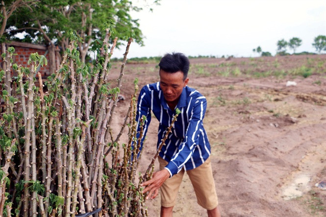 Gia đình ông Nguyễn Văn Thanh chuẩn bị hom mỳ để trồng cho vụ năm nay.