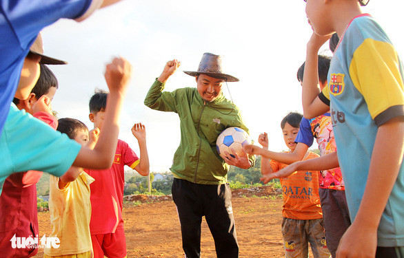 “Thầy giáo Nội” chơi vui đá banh với học trò - Ảnh: TRUNG TÂN