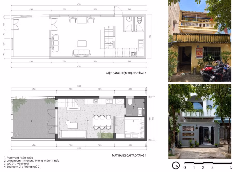 Với một chi phí vừa phải, giải pháp chính đưa ra là tổ chức lại không gian bằng kiến trúc, giếng trời và thông gió tự nhiên.