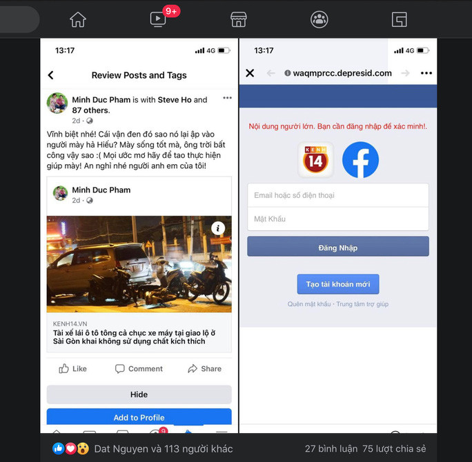Trót thực hiện việc đăng nhập lại tài khoản Facebook khi có tài khoản tag tên bạn với câu chuyện thương tâm, phải lập tức đổi mật khẩu.