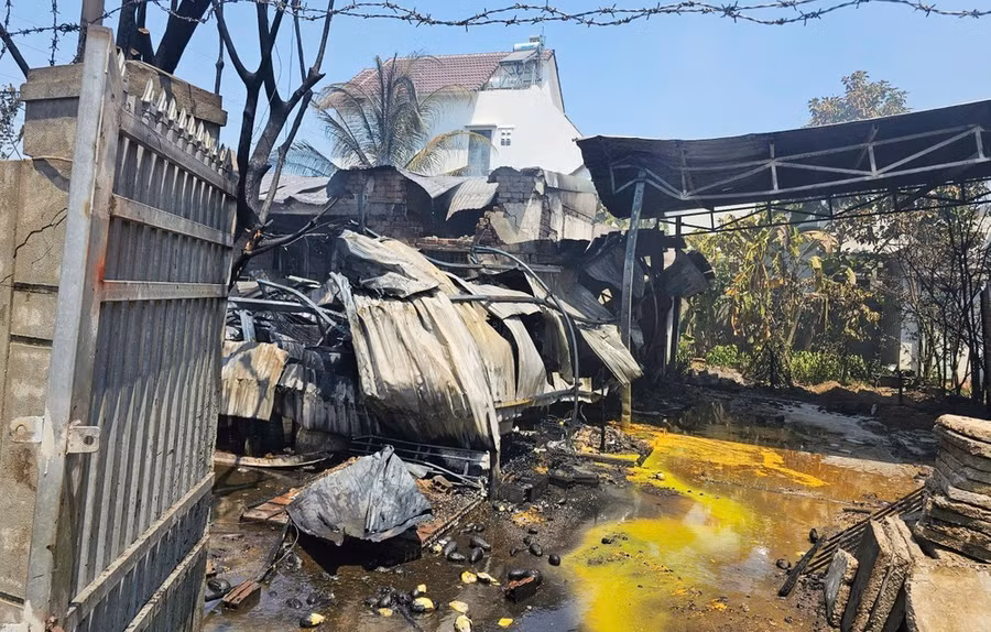 Vụ cháy không gây thiệt hại về người, nhưng đã thiêu rụi hoàn toàn khu xưởng cùng nhiều thùng chứa dung môi để phun sơn PU; mái tôn bị sụp đổ, tường rào nứt toác do sức nóng vụ cháy…