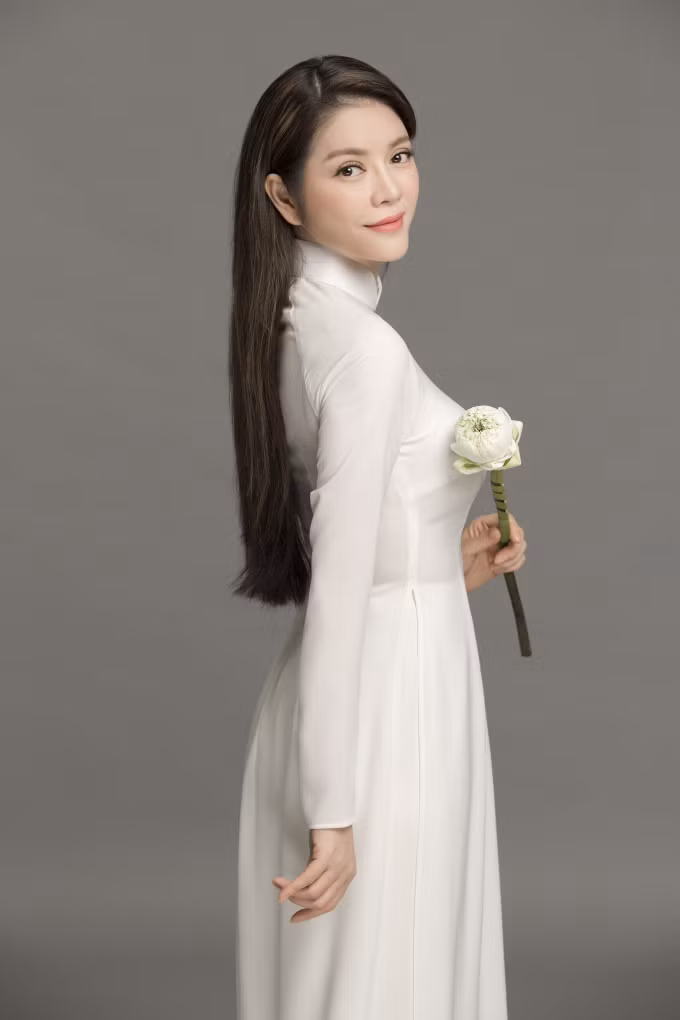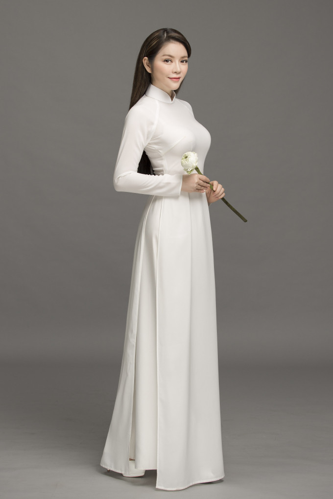 Tà áo dài trắng đơn giản nhưng không kém phần cuốn hút góp phần tôn lên nét dịu dàng, thanh lịch của người con gái Việt Nam. Với Lý Nhã Kỳ, chỉ cần thả suối tóc suông, tay cầm cành sen trắng, cô cũng đã đủ sức thu hút mọi ánh nhìn nhờ vẻ dịu dàng và duyên dáng của mình.