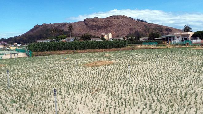 Sản xuất tỏi, hành đã khai thác sâu túi nước ngọt trên đảo Lý Sơn. Ảnh: Phạm Anh