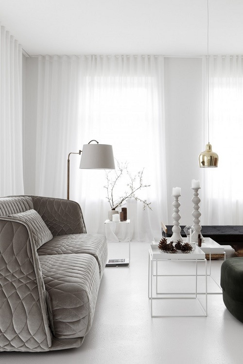 Nếu bạn lo lắng màu trắng tạo cảm giác ngôi nhà trông lạnh lẽo vì màu trắng là gam màu lạnh. Hãy trang điểm vào căn phòng những nội thất ấm áp làm bằng gỗ hoặc các đồ vật trang trí bằng chất liệu ấm áp như len hay có màu sắc ấm áp hơn.