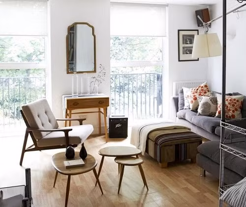 Đồ nội thất nhỏ thấp sẽ tiết kiệm không gian trong nhà và tạo thêm nhiều khoảng không, giúp căn phòng thoáng hơn. Đối với phòng ngủ hãy chọn giường tủ chân ngắn hay thậm chí sát đất. Đừng ngần ngại làm tương tự như thế đối với bàn ghế phòng khách.