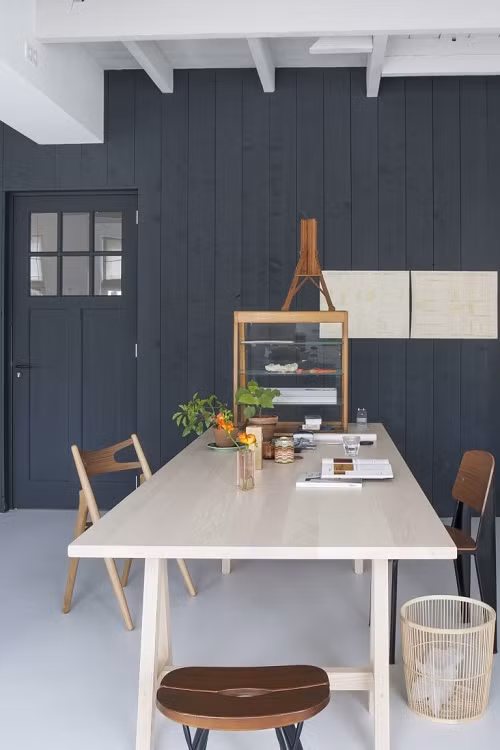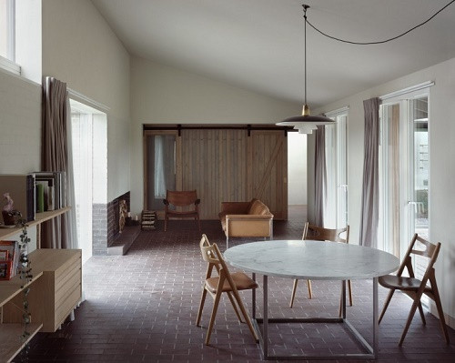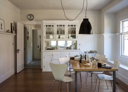 Nhà thiết kế rất khéo léo đặt tất cả bàn ăn và tủ đứng sang một bên, tạo khoảng trống riêng cho lối đi, khiến phòng ăn trông rộng hơn rất nhiều so với thực tế.