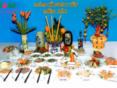 Mâm cỗ miền Bắc: Mâm cỗ Tết miền Bắc theo đúng bài bản, thường thì 4 bát, 4 dĩa. Cỗ lớn thì 6 bát, 6 dĩa hoặc 8 bát, 8 dĩa… có khi mâm cỗ lớn phải xếp cao đến 2, 3 tầng.