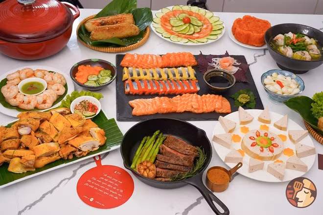 Với sự giao lưu văn hóa mạnh mẽ, nhiều món ăn du nhập từ nước ngoài như lẩu, salad, gà quay, sushi, beefsteak hay bánh ngọt phương Tây đã dần xuất hiện trong bữa cơm Tết. Dù không mang ý nghĩa biểu tượng truyền thống, những món ăn này đáp ứng nhu cầu và khẩu vị hiện đại, đặc biệt thu hút thế hệ trẻ.