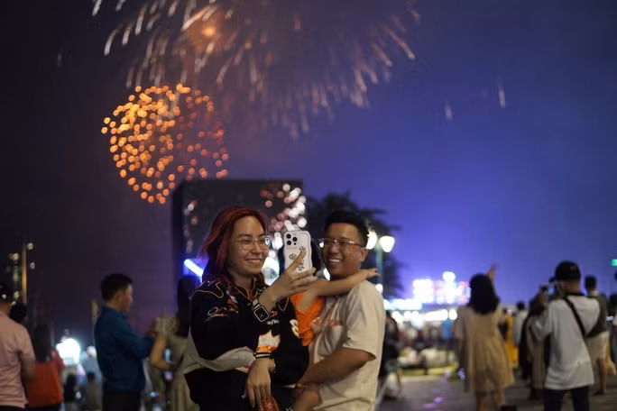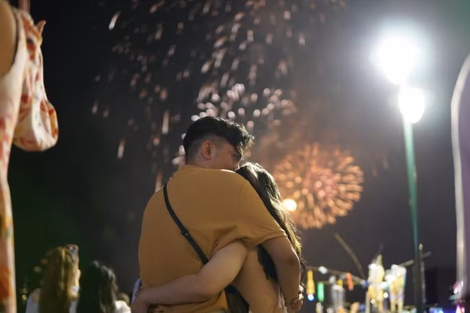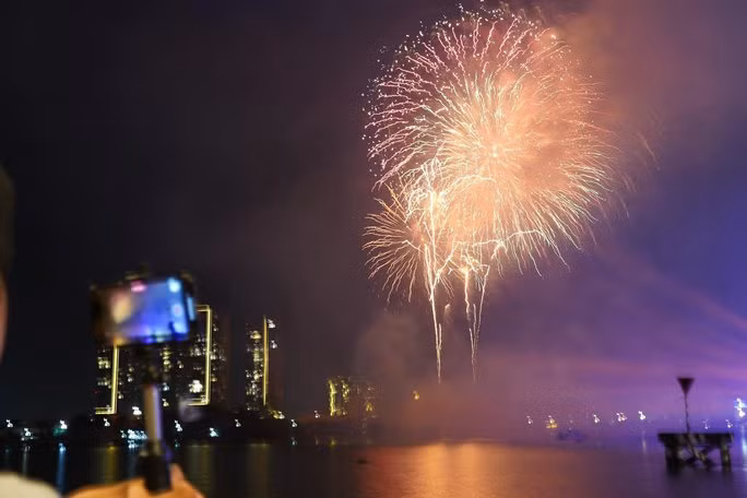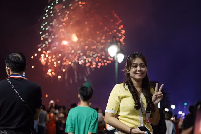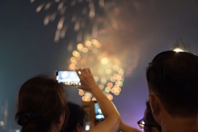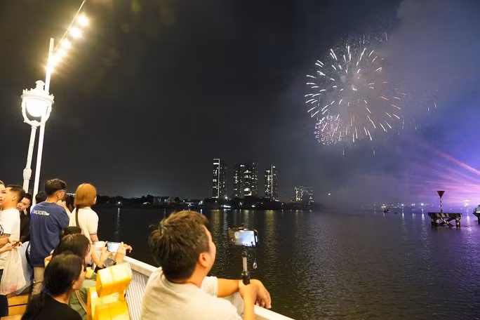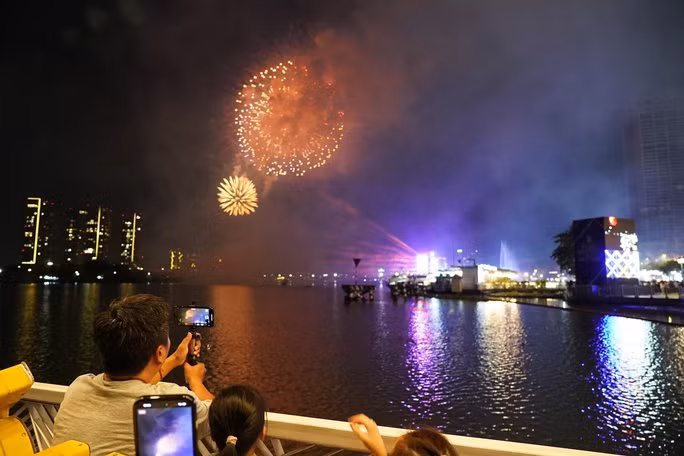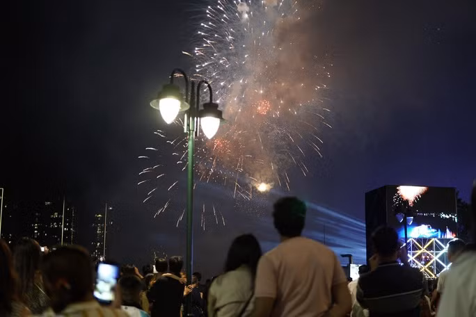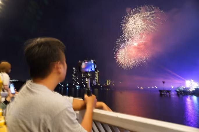 Khi chương trình bắn pháo hoa bắt đầu nhiều người đã hò reo, dùng điện thoại quay lại khoảnh khắc đẹp của màn pháo hoa nghệ thuật.