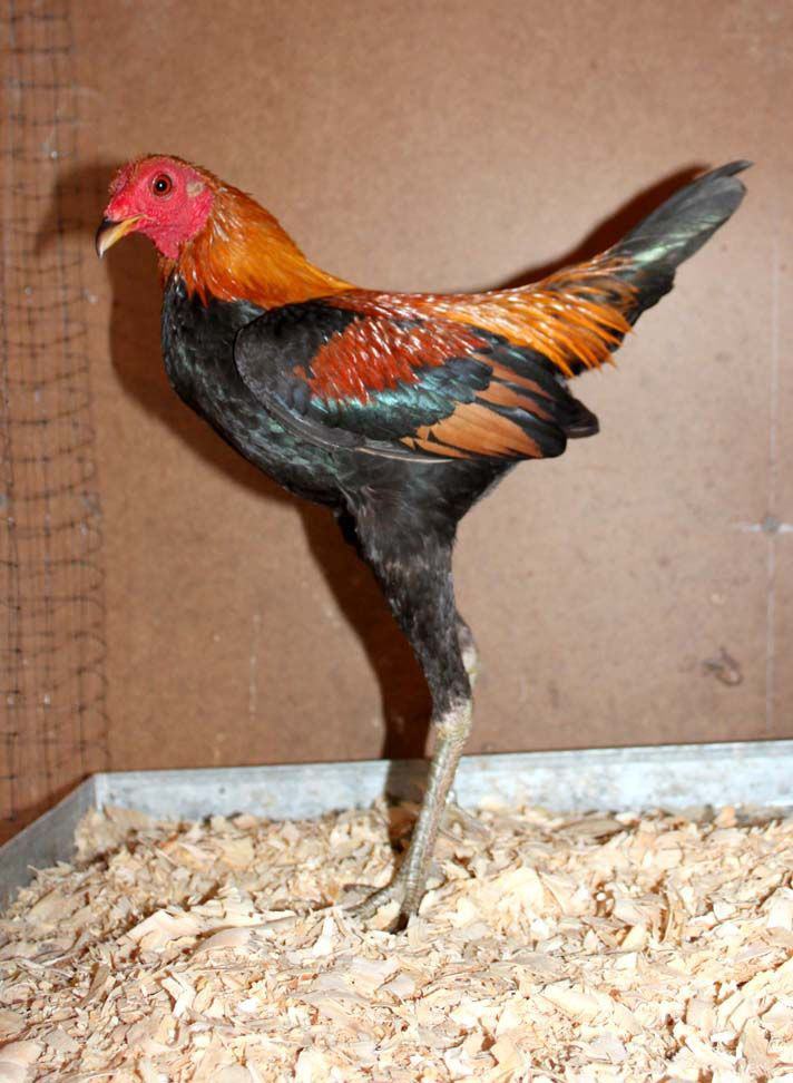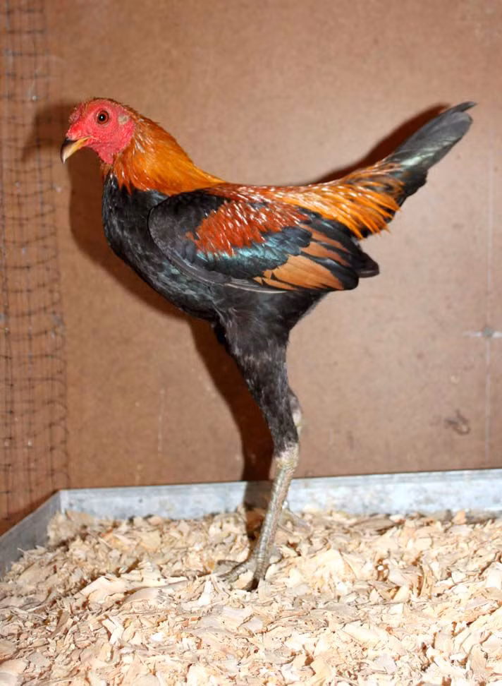Dòng cỡ trung nặng 0,6 kg, dòng tiêu chuẩn (standard) nặng 1,8 kg. Ngoại hình chúng khá giống gà tre Việt Nam. Chúng là giống nền để lai tạo ra giống gà chọi Mỹ sau này.