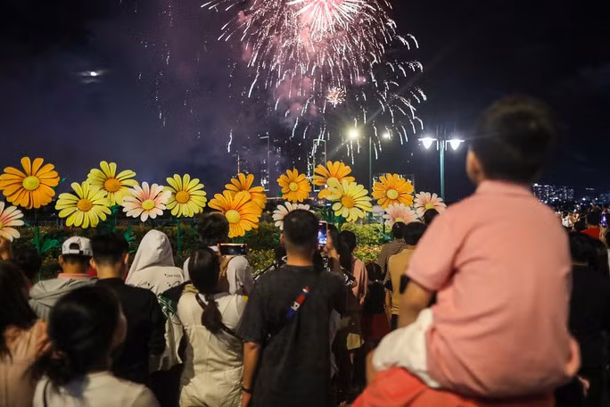 Hàng ngàn người dân đổ về trung tâm TP HCM để theo dõi màn bắn pháo hoa.