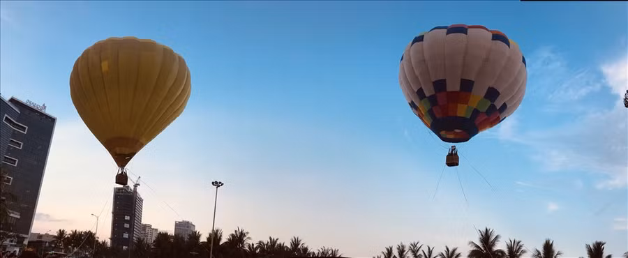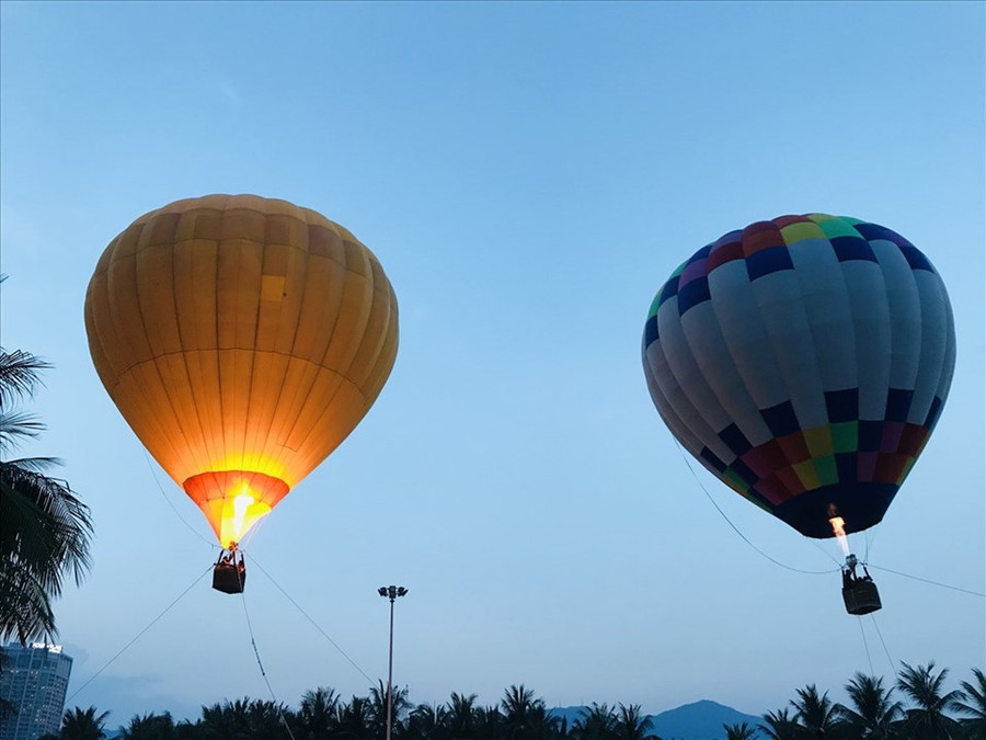 Những chiếc khinh khí cầu nhiều sắc màu trên biển cuốn hút du khách.
