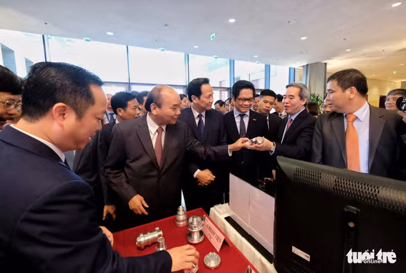 Thủ tướng Nguyễn Xuân Phúc khẳng định yếu tố nhân lực có kỹ năng, tay nghề cao đóng góp vai trò đặc biệt quan trọng trong tăng năng suất lao động vượt trội, thúc đẩy tăng trưởng đẩy GDP, nâng cao năng lực cạnh tranh quốc gia - Ảnh: NAM TRẦN