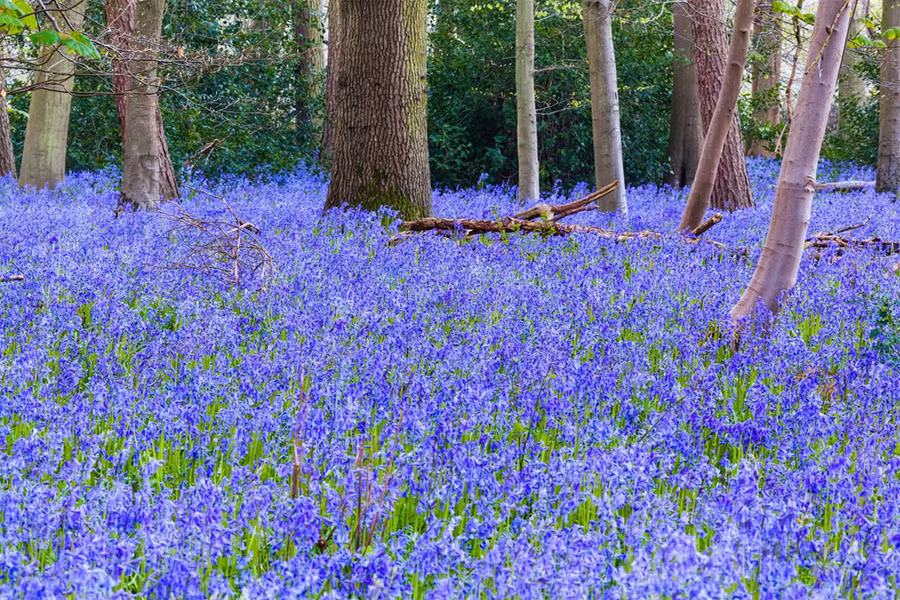 6. Rừng bluebell ở Anh: Nếu đi vào các khu rừng ở Anh vào mùa xuân, bạn có thể gặp một bất ngờ thú vị. Không chỉ có những cây mới mọc lá, nền rừng còn được phủ một màu xanh thẫm bởi hoa bluebell mọc lên. Bluebell có hình giống chiếc chuông màu xanh và mùi thơm nhẹ. Tại Anh, Bluebell được bảo vệ nghiêm ngặt theo luật bảo vệ thiên nhiên. Ảnh: CNTravel.
