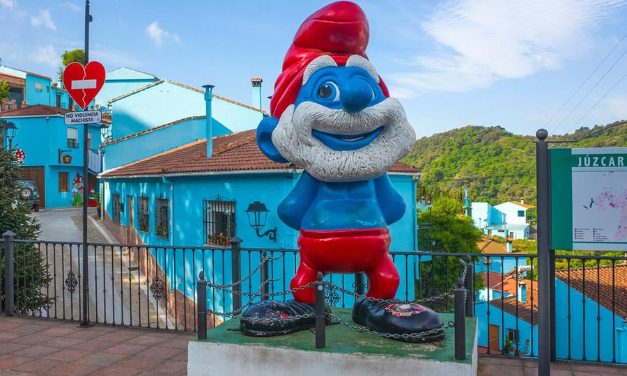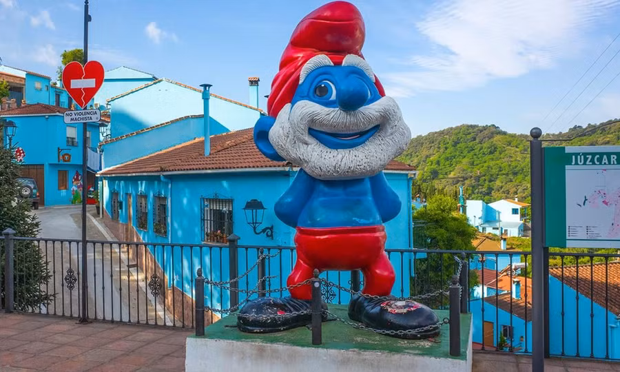 7. Júzcar, Tây Ban Nha: Tuyệt vọng vì nghèo nàn, ngôi làng Júzcar ở miền Nam Tây Ban Nha đã đồng ý để một nhãn hàng sơn màu xanh lên toàn bộ nhà cửa nhằm quảng bá cho bộ phim Smurfs vào năm 2011. Thương hiệu đã đồng ý sơn lại ngôi làng màu trắng sau khi chương trình kết thúc, nhưng do sự nổi tiếng của bộ phim, kéo theo hàng nghìn du khách tới tham quan nên Júzcar đã quyết định giữ lại màu xanh cho ngôi làng. Ảnh: Wanderlust.
