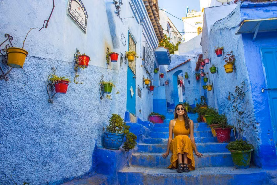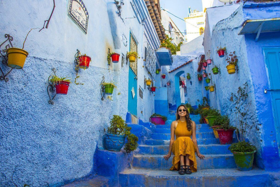 5. Chefchaouen, Morocco: Là một thành phố ở phía tây bắc Morocco, Chefchaouen hấp dẫn du khách thập phương bởi những ngôi nhà được sơn hoàn toàn bằng màu xanh dương. Có nhiều lời giải thích khác nhau như những bức tường được sơn xanh để đuổi muỗi, cũng có thể màu sắc tượng trưng cho bầu trời và thiên đường hoặc đơn giản chỉ để du khách chụp được những tấm hình đẹp. Ảnh: Suitcaseandi.