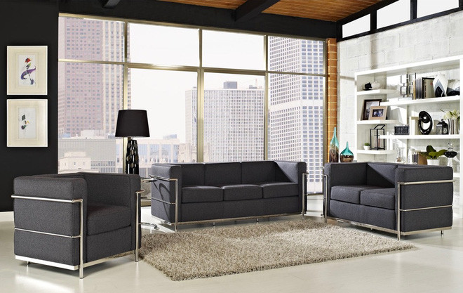 Sofa Le Corbusier: Bộ sofa khung thép với nệm dày đề cao phong cách hiện đại, rất phù hợp cho những ngôi nhà đơn giản nhưng hướng đến sự tiện nghi. Bộ sofa Le Corbusier đầu tiên được thiết kế vào năm 1928 và đến nay, nó vẫn là một mẫu sofa được ưa thích.