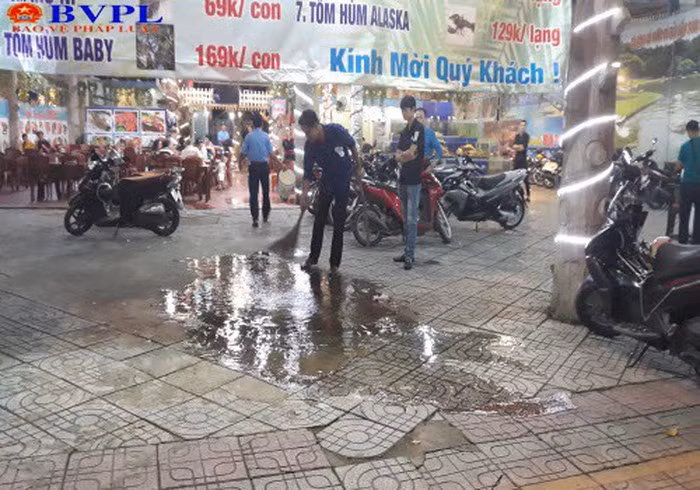 Ghi nhận của PV tại hiện trường khuya 20/10, nhiều thực khách vẫn còn ăn trong quán khi sự cố xảy ra, nhiều vết máu vương vãi trên nền gạch, công an đang ghi lời khai của những người có liên quan./.
