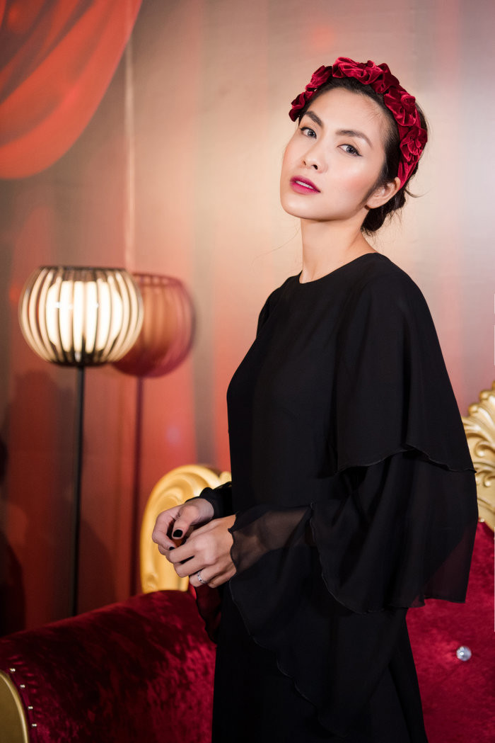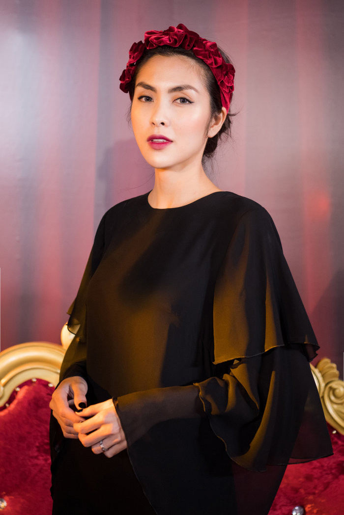 Xuất hiện trong show diễn, Hà Tăng diện áo dài màu đen kín đáo và đơn giản nhưng vẫn vô cùng cuốn hút với thần thái ngút ngàn. Nữ diễn viên có vẻ gày hơn trước, cô chia sẻ thời gian gần đây bị dạ dày nên ăn uống không được tốt lắm khiến cân nặng có giảm chút ít.