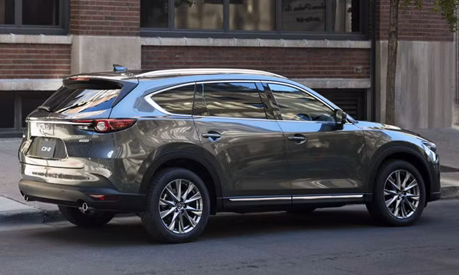 Tuy nhiên, phần đuôi của Mazda CX-8 lại chịu nhiều ảnh hưởng từ CX-9 với cụm đèn hậu quen thuộc và dải chrome nối giữa. Chỉ tấm chắn bùn phía sau và ống xả kép hình tròn là những thiết kế riêng của CX-8.