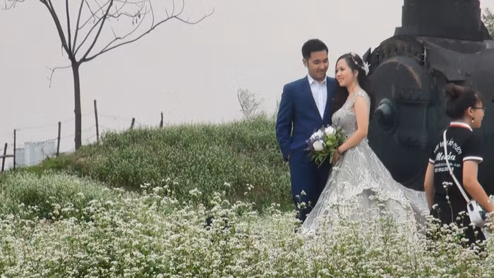 | Với vẻ đẹp dịu dàng, tinh khiết thung lũng hoa tam giác mạch đã thu hút nhiều cặp đôi cũng như các bạn trẻ đến ghi lại những khoảnh khắc đáng nhớ |