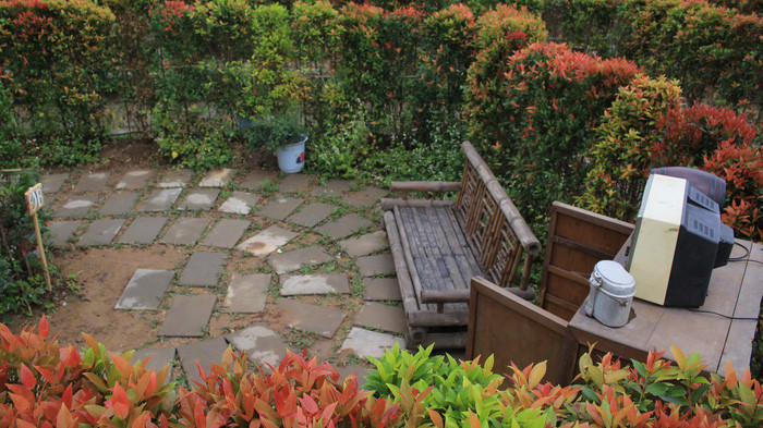 Cây hồng lộc có lá màu non bắt mắt, cùng những tiểu cảnh được trang trí bắt mắt tạo điểm nhấn cho khu vườn.