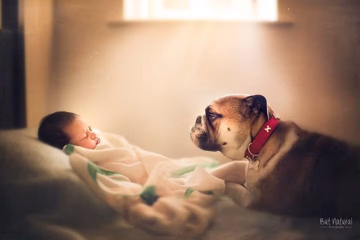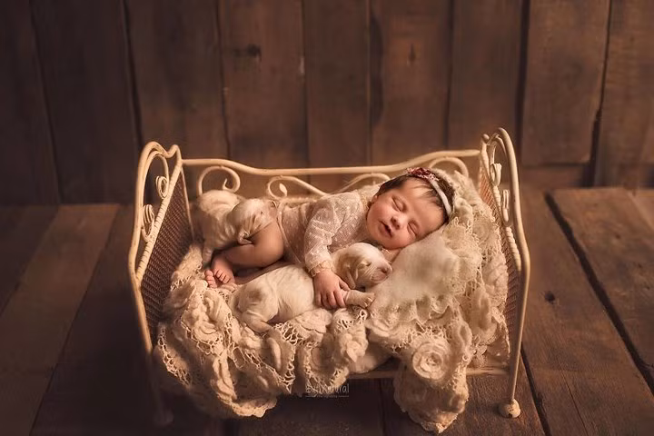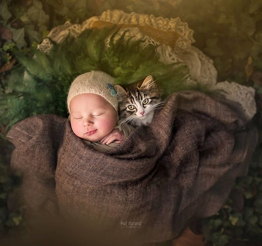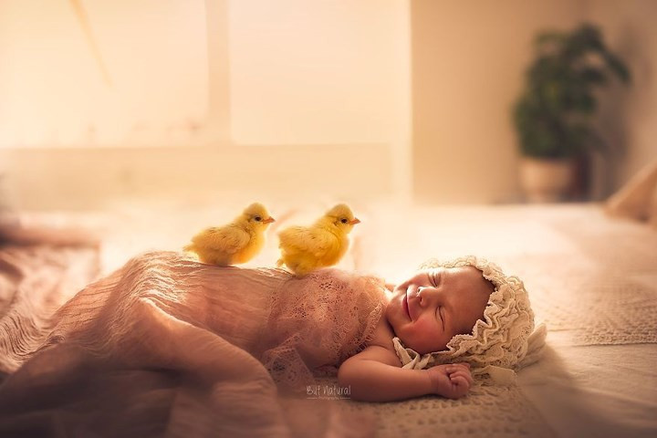 Nhiếp ảnh gia người Anh Sujata Setia đã chụp bộ ảnh các em bé sơ sinh với những con thú cưng tạo nên những câu chuyện đầy màu sắc.