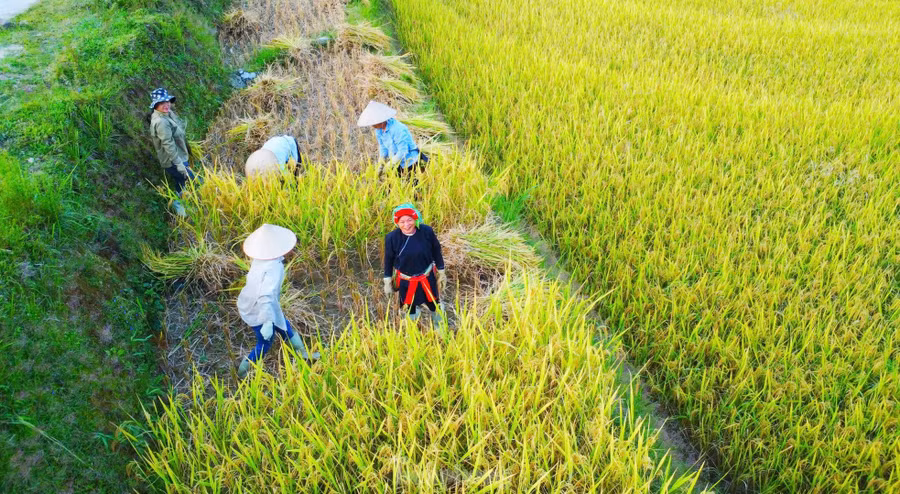 Những ngày đầu tháng 10, những thửa ruộng bậc thang ở thôn Xà Phìn, xã Phương Tiến, huyện Vị Xuyên, Hà Giang khoác lên mình "tấm áo mới" vàng óng ả, tạo nên khung cảnh tuyệt đẹp giữa núi rừng thu hút đông đảo du khách trong và ngoài nước đến tham quan, chụp ảnh.