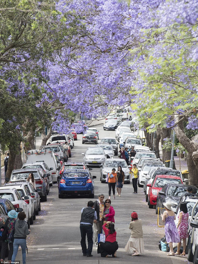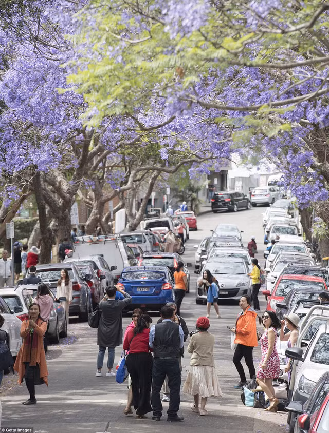 Ngoài ra, Sydney cũng là điểm đến lý tưởng ngắm phượng tím. Trong những ngày này, Jacaranda đang nở ngợp trời. Lượng du khách đổ dồn tới những tuyến phố trồng nhiều hoa khiến giao thông bị ùn tắc. Giao thông tại khu phố McDougall ở Kiribili, Sydney rơi vào tình trạng tắc nghẽn khi khách châu Á ùn tới chụp hình.