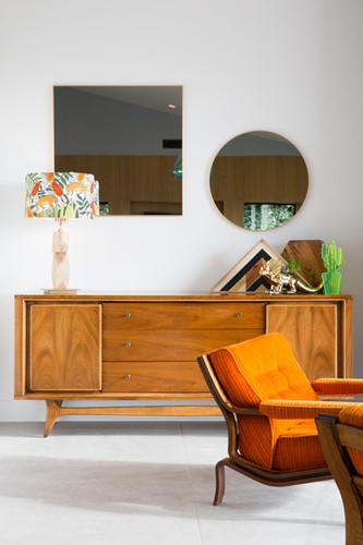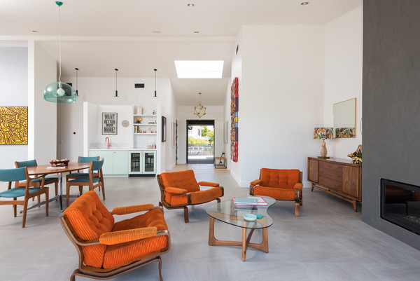 Phòng khách, phòng bếp và phòng ăn được thiết kế theo phong cách retro đầy cá tính và độc đáo.