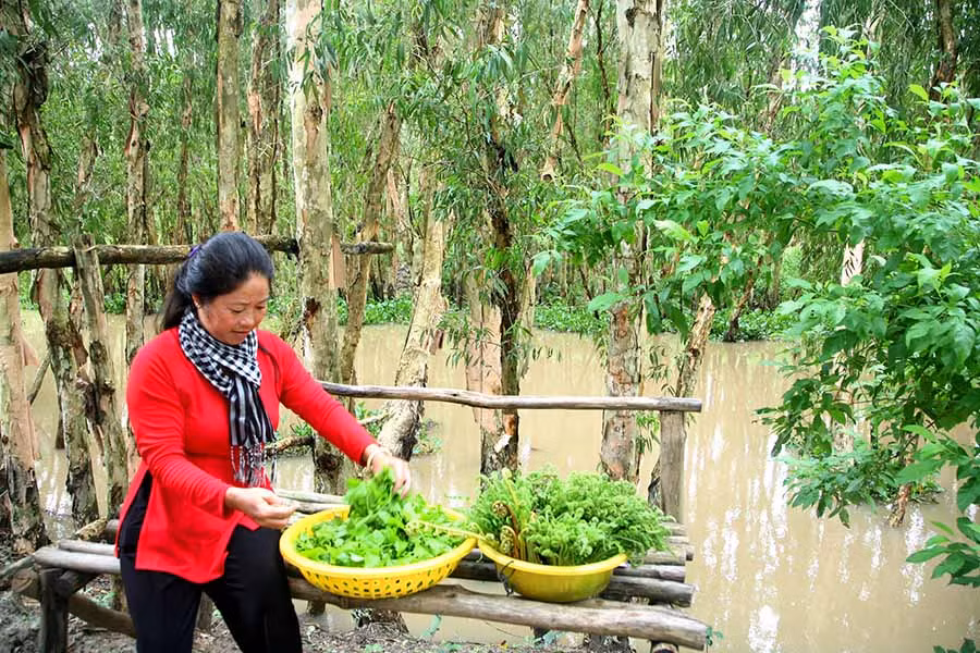 Càng đi sâu vào giữa rừng tràm, càng thấy như tách biệt hoàn toàn với cuộc sống đời thường. Ở đây, không có tiếng động cơ rộn rã, không có nhà bê tông, không có internet. Chỉ có tiếng chim líu lo và hương hoa thơm ngát, tiếng mái chèo khua nhẹ và mùi hoa tràm ngai ngái.