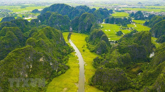 | Từ giữa tháng 5, cánh đồng lúa ở Tam Cốc (xã Ninh Hải, Hoa Lư, Ninh Bình) bắt đầu chín rộ. (Ảnh: Minh Đức/TTXVN) |