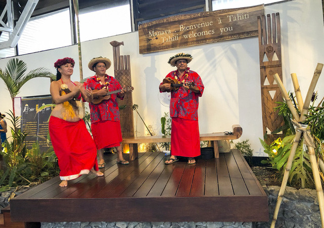Khi du khách đặt chân xuống sân bay quốc tế Tahiti Faa'a, họ được chào đón rất nồng hậu bởi những tiếng trống, những lời ca và những điệu múa đặc trưng trong trang phục cổ truyền của người Tahiti bản địa.