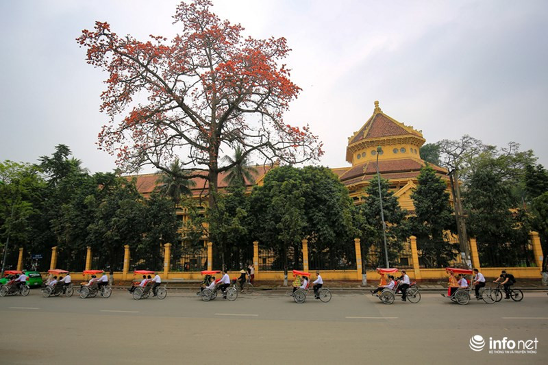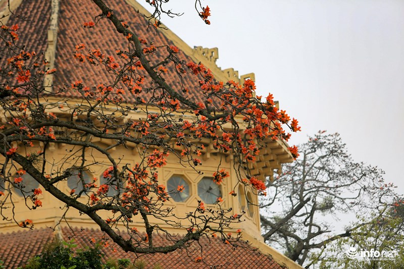 Hà Nội mỗi tháng, mỗi mùa đều có những loài hoa mang vẻ đẹp riêng. Tháng 3, tháng của những ngày gió nồm, mưa ẩm lại là thời điểm những bông hoa gạo bung nở đỏ rực cả một góc trời. Nhìn từ phía xa, những cây gạo ở khuôn viên Bảo tàng Lịch sử Quốc gia đã nhuộm đỏ bao trùm trên tán cây cao chót vót.