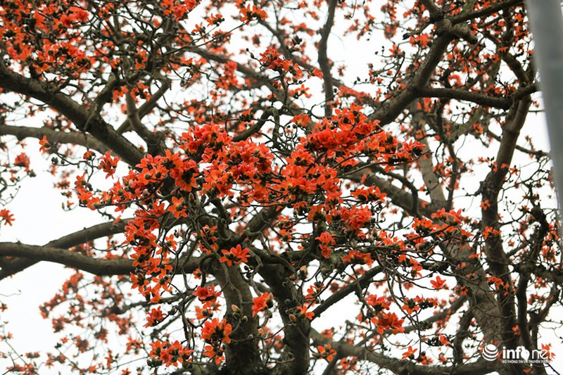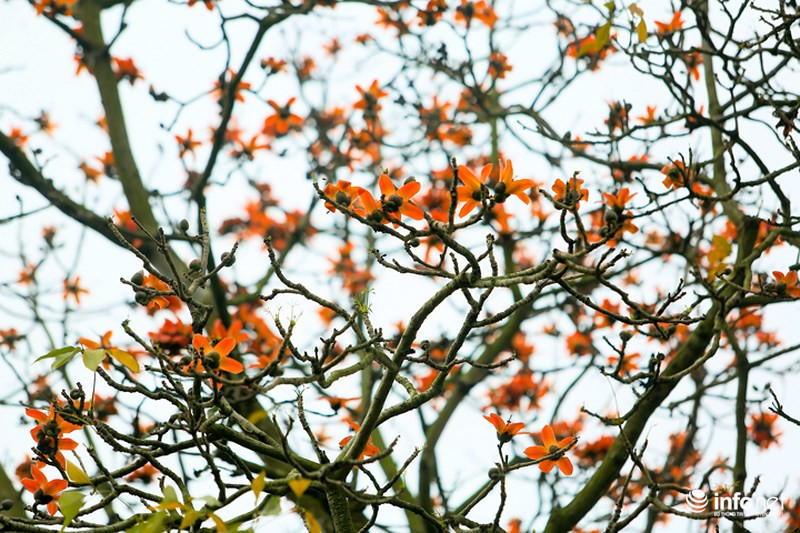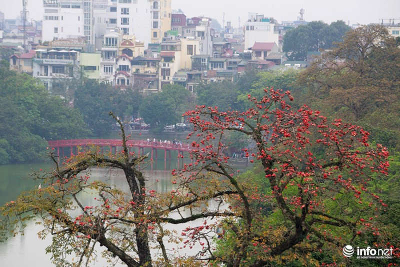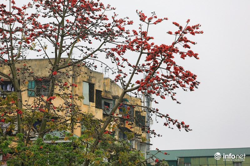 Tháng 3, ở Hà Nội những cây hoa gạo cổ thụ lại bắt đầu khoe sắc nở như những đốm lửa đốt cháy cả một góc trời.