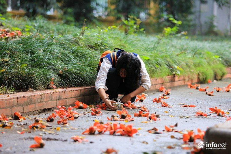 Những bông hoa gạo mỏng manh có một vẻ đẹp lôi cuốn kỳ lạ, những bạn trẻ yêu mến loài hoa này cũng tranh thủ cơ hội để ghi lại từng bức hình về vẻ đẹp loài hoa này.