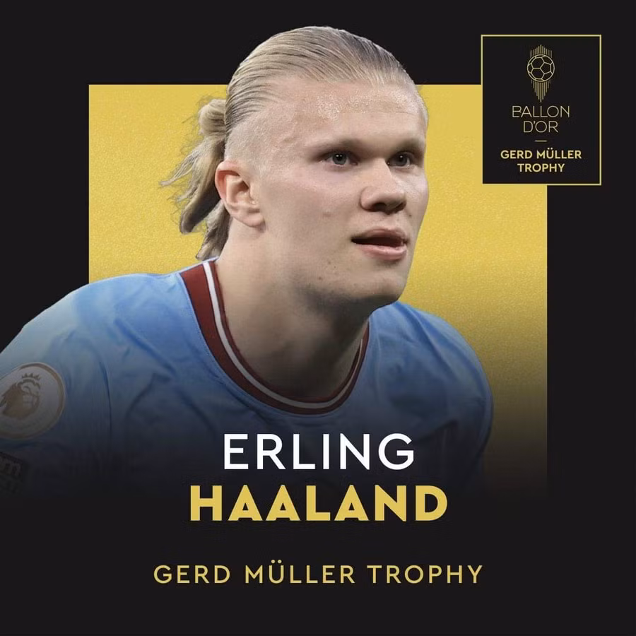 Danh hiệu Quả bóng bạc thuộc về Erling Haaland. Đây là phần thưởng cho nỗ lực của Haaland ở mùa giải 2022-2023 khi chân sút người Na Uy ghi 52 bàn trong 53 trận trong màu áo Man City. Haaland giành Vua phá lưới Ngoại hạng Anh 2022-2023 với 36 bàn, số bàn kỷ lục của giải đấu trong một mùa. Anh cũng đoạt ngôi Vua phá lưới Champions League với 12 bàn trong 11 trận. Về danh hiệu tập thể, Haaland đoạt cú ăn ba với Man City, khi đăng quang ở Ngoại hạng Anh, Champions League và FA Cup.