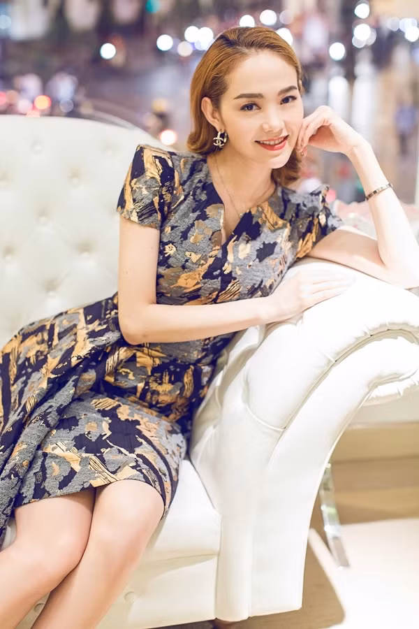 Người đẹp sinh năm 1987 để tóc uốn xoăn tự nhiên , kẻ chân mày đậm. Cô kết hợp trang phục với phụ kiện kim loại.