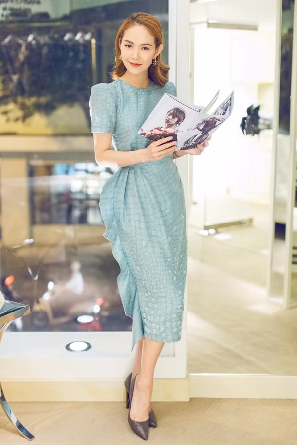 Những mẫu váy phồng hông, phom dáng lục bình được Minh Hằng kết hợp cùng giày cao gót mũi nhọn.