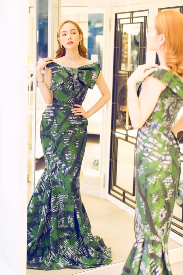 Đầm đuôi cá phom dáng chít eo tôn dáng của Minh Hằng.