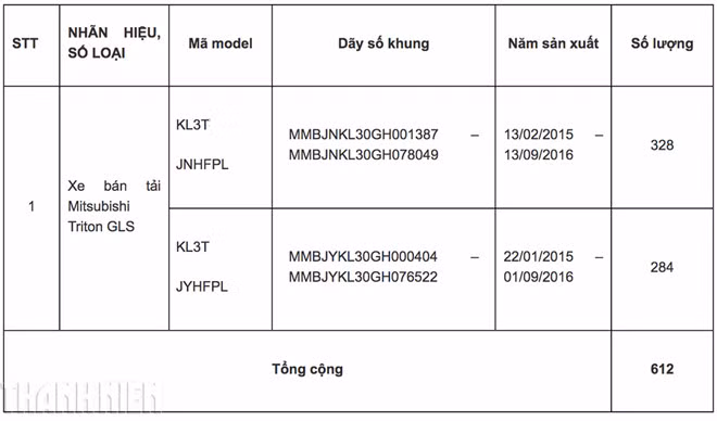 | 612 chiếc bán tải Triton phiên bản GLS nằm trong diện triệu hồi |